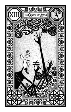 This is perhaps one of the darkest, saddest, most violent suits in the tarot. It often deals with some of the more somber aspects of life, and often has its characters failing in their endeavors, sometimes with no relief to their hardships. The turmoil represented in this suit, in the Sickly deck and in most decks, rivals any obstacles depicted in any cards from the other suits in the deck, often to dismal ends.